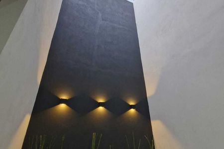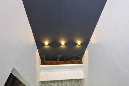 Ventanas de proyección, cisterna de 6000 litros, alturas de 2.8 ms, pasamanos de madera, domo de cristal y aluminio.