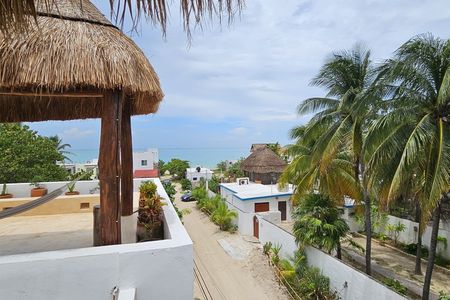 -Recámara 1 con vista al área social y tiene un ventanal que abre al exterior, con closet vestido, y baño completo.