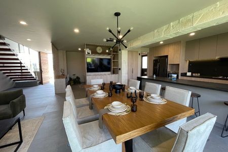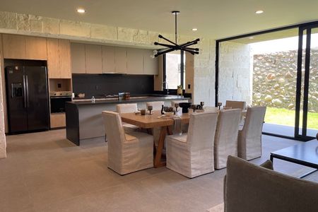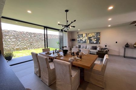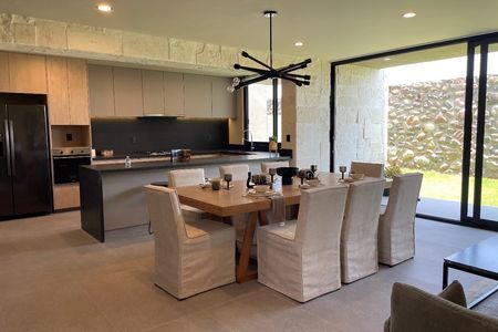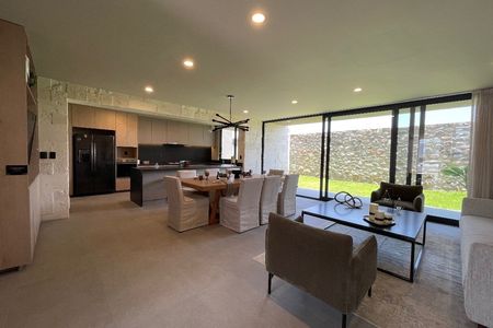 Este espectacular modelo CIELO, cuenta en planta baja garaje techado 3 vehículos, baño de visitas, sala , sala tv con baño , comedor , cocina equipada, jardín , terraza con bar, área de lavado, cuarto de servicio con baño. En planta alta, recámara principal con vestidor y baño, dos recámaras con baño y vestidor cada una . Terraza en recámaras.