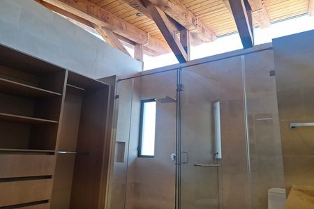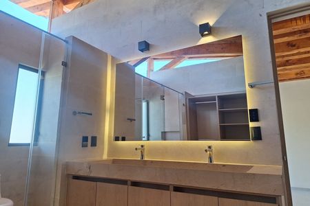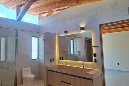 Planta alta: recámara principal con vestidor, baño y terraza, recámara secundaria con closet, terraza y baño compartido con sala de TV.