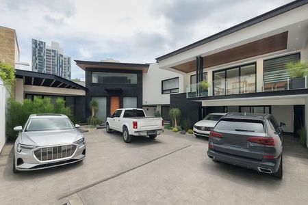 Cuenta con7 recámaras con vestidor y baño cada una, 2 medios baños (visitas), sala, comedor, antecomedor, cocina cerrada, 2 alacenas, 2 estudios, 1 sala de TV, 5 terrazas, 6 balcones, 3 chimeneas, 3 bodegas, 2 cuartos de servicio con baño, cuarto de lavandería, área de lavandería, patio de tendido, caseta de vigilancia, jardín, alberca y jacuzzi.