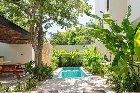 Torre Temozón ofrece una amplia variedad de tipologías de departamentos, desde 44 m² hasta más de 120 m², con distribuciones inteligentes que aprovechan cada espacio. Los acabados de alta gama incluyen pisos de mármol travertino, cocinas integrales con mesetas de granito, closets de carpintería en madera natural, y terrazas con piso porcelanato, brindando un ambiente elegante y moderno.