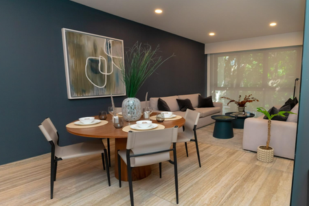Al entrar, el piso de pasta te dan la bienvenida, recordando la amplia herencia arquitectónica de la ciudad. El comedor, lleno de luz natural, es el escenario ideal para largas pláticas con amigos y familia. La sala es cálida y cómoda.